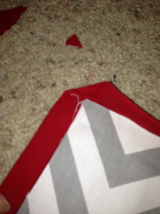 4. Fold corners in to your liking, it took me a bit to figure out how I wanted the corners , once I did I cut off any excess to avoid bulkiness. Pin down corners and than start sewing!